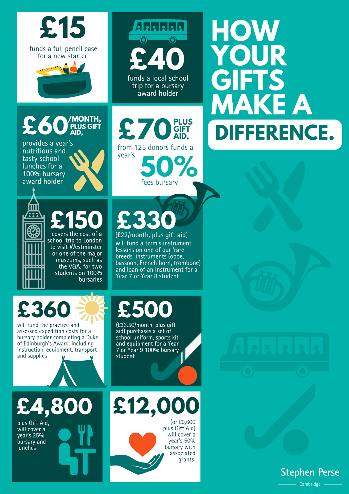 • Thank you for your interest in making a donation to help us to ensure that a Stephen Perse education is available to as many children and young people as possible in Cambridge and its surrounding communities.